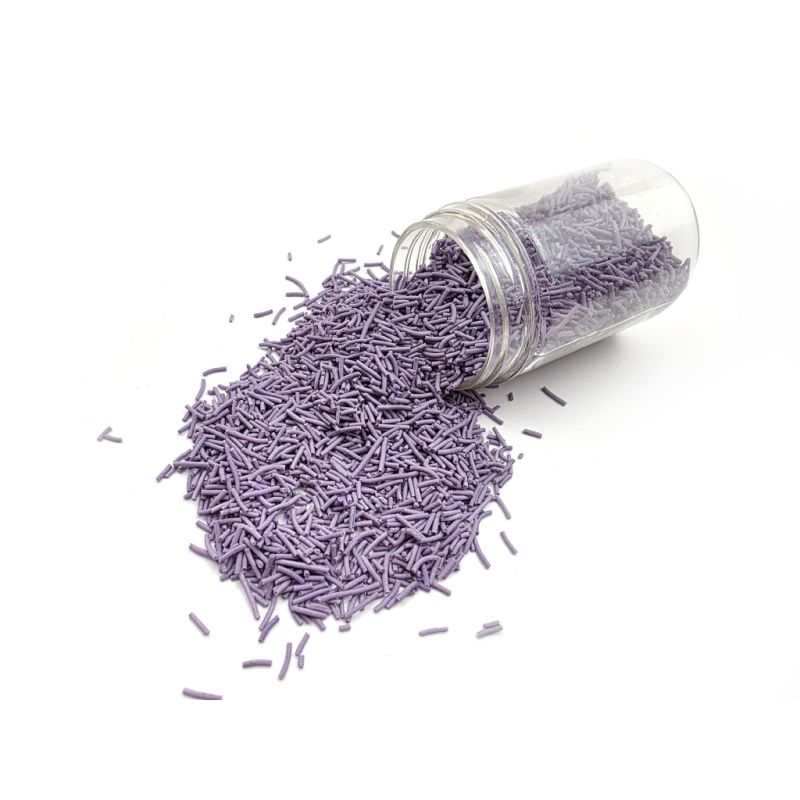 Cukrové tyčinky levandulové dělají dorty, sušenky, cupcaky, perníčky, dortíky a zmrzlinu ze sušenek velmi elegantní. Dodávají dezertům dokonalý vzhled. Hodí se na každou příležitost. Od této chvíle je zdobení cupcaků a dortů ještě jednodušší! Používají je také profesionální cukráři k dozdobení dortů a jiného pečiva. Máme je v různých barvách, velikostech a tvarech. Díky tomu je lze snadno sladit s dalšími detaily na pečivu nebo dezertech. Pokud zdobení nasypete na vláčný krém, vlhkost z něj může posypek změkčit. Ale pozor, pokud bude zdobení na vlhkém krému delší dobu, může se z posypku uvolnit i barvivo a to na povrch krému. Pokud chcete, aby větší části dekorace drželi například na potahovém dortu, můžete tento druh zdobení k dortům lepit polotuhou čokoládou, nebo glazurou na perníčky. s posypky pracujte nejlépe nad miskou, či plechem s okrajem. Pokud zdobení nasypete na vláčný krém, vlhkost z něj může posypek změkčit. Ale pozor, pokud bude zdobení na vlhkém krému delší dobu, může se z posypku uvolnit i barvivo a to na povrch krému. Pokud chcete, aby větší části dekorace drželi například na potahovém dortu, můžete tento druh zdobení k dortům lepit polotuhou čokoládou, nebo glazurou na perníčky. s posypky pracujte nejlépe nad miskou, či plechem s okrajem.