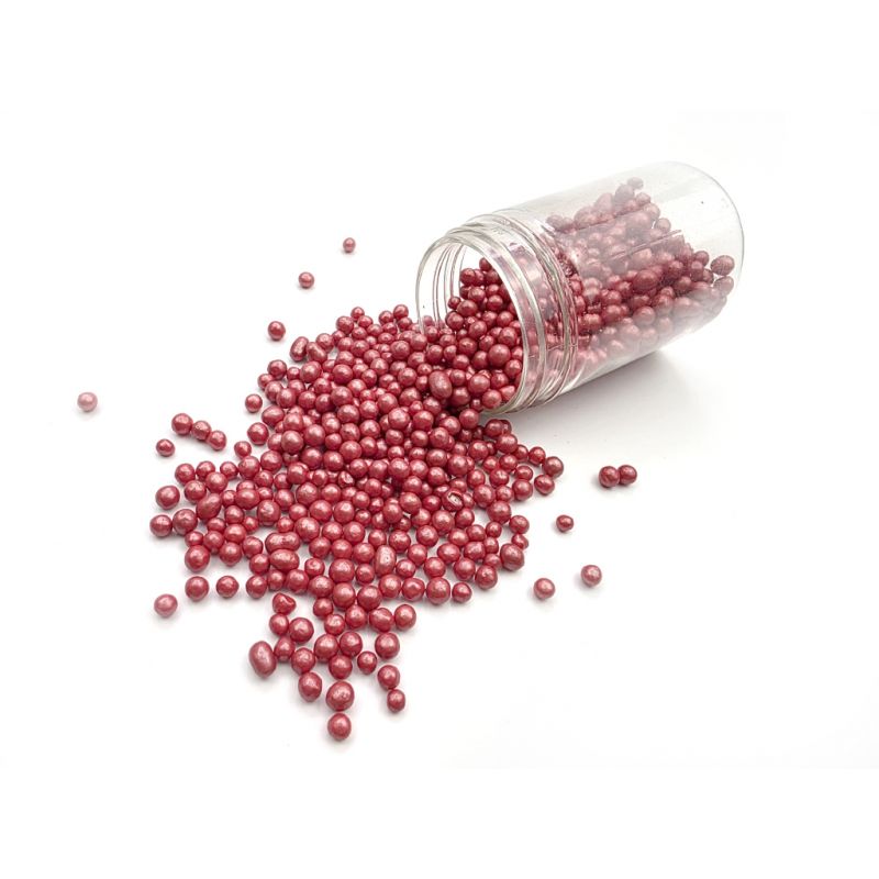 Červené cukrové perličky jsou krásným doplňkem hladkého povrchu dortů. Dají se s nimi zdobit i perníčky, drobné cukroví, muffiny nebo dorty. Jedná se o univerzální dekorace, které vám pomohou doladit vaše chutné pečivo. Další obrovskou výhodou perel je jejich snadná aplikace. Stačí je položit na vámi vybraný povrch a je hotovo. Perly se perfektně hodí k cukrové pastě a dalším. Lze je kombinovat s různými krémy. V naší nabídce najdete jemné cukrové perly, které lze bez obav konzumovat i s dezertem. Pokud zdobení nasypete na vláčný krém, vlhkost z něj může posypek změkčit. Ale pozor, pokud bude zdobení na vlhkém krému delší dobu, může se z posypku uvolnit i barvivo a to na povrch krému. Pokud chcete, aby větší části dekorace drželi například na potahovém dortu, můžete tento druh zdobení k dortům lepit polotuhou čokoládou, nebo glazurou na perníčky. s posypky pracujte nejlépe nad miskou, či plechem s okrajem.
