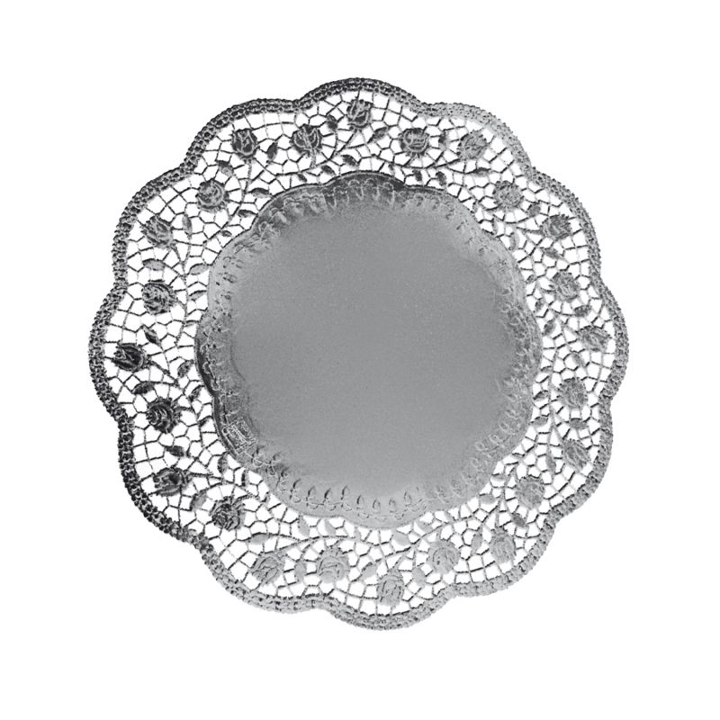 Ozdobná krajková podložka pod dort či zákusky z kvalitního cukrářského papíru laminovaného metalickou fólií. Vhodná pro podávání cukrovinek a jiných specialit.