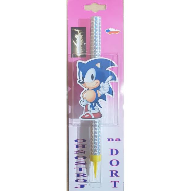 Dortová fontána s motivem ježka Super Sonica. Fontánu jednoduše zapíchněte špičkou do dortu a zapalte horní okraj. Fontána vytváří zářící a jiskřivý efekt. Fontány vytvářejí jedinečnou atmosféru. Při manipulaci s fontánou dodržujte bezpečnostní pokyny výrobce uvedené na obalu.