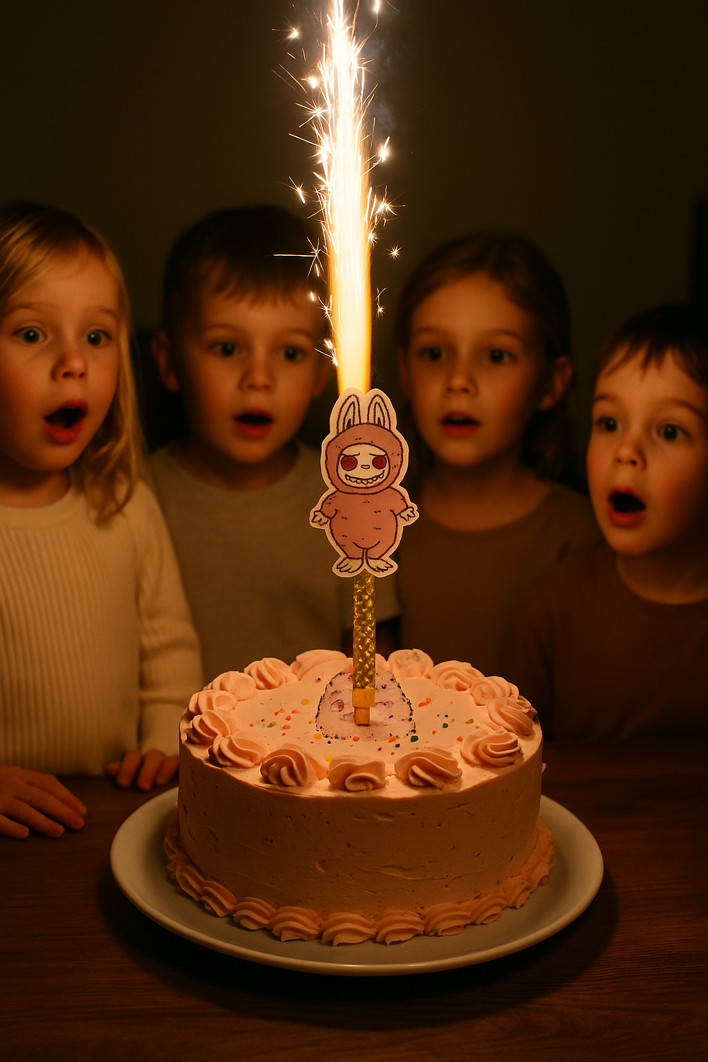 Originální postavička Labubu vykukující z dortu pobaví malé i velké oslavence.