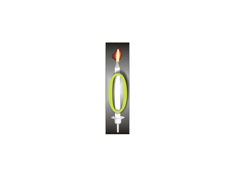 Klasická dortová svíčka s plastovou dekorací ve formě neonově žlutého čísla nula. Délka svíčky je 8,8 cm, šířka 8 mm. Reflexní číslo má rozměry 4,6 x 3 cm. V balení najdete kromě svíčky i plastový nástavec se zapichovátkem na dort.