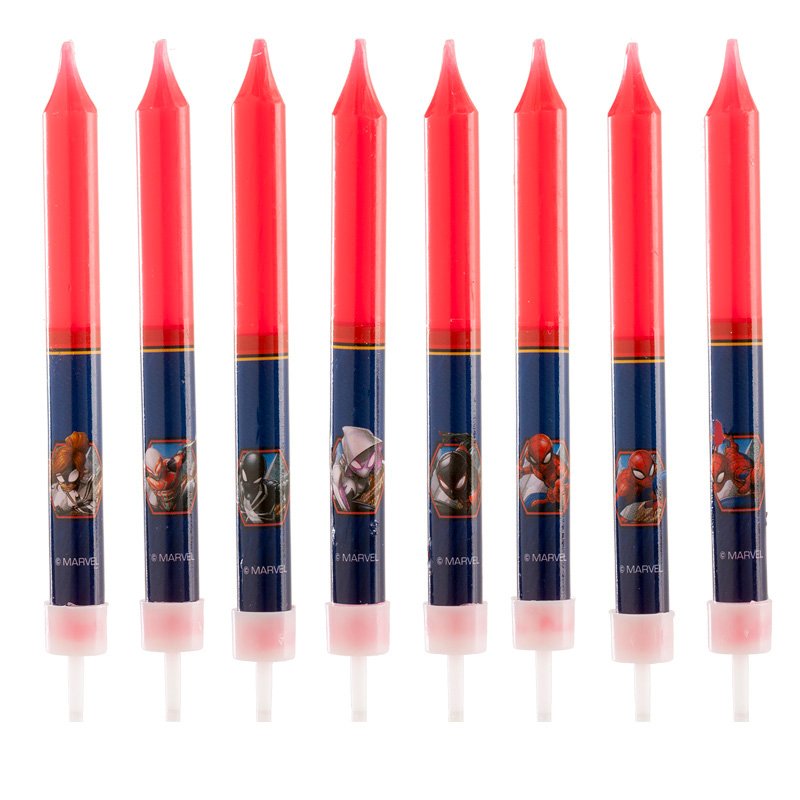 Dortové svíčky s obrázky hrdiny Spider Mana. Můžou být použity samostatně nebo v kombinaci s jinými svíčkami či světelnými fontánami. Umisťují se na hotový dort. Svíčka je nejedlá dekorace. V balení 8 ks svíček. Výška 9 cm.