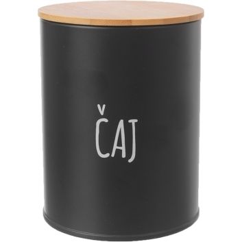 Bílý nápis ČAJ okamžitě prozradí, jaký obsah plechovka ukrývá – ať už jste příznivcem sypaného čaje, bylinkových směsí nebo čajových pytlíků, tato dóza bude skvělým místem k jejich uchování. Součástí je i víčko z bambusového dřeva, jehož silikonové těsnění zaručuje, že se obsah nevysype, kde nemá.