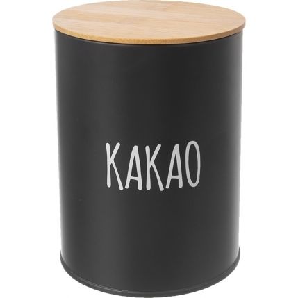 Bílý nápis KAKAO okamžitě prozradí, jaký obsah plechovka ukrývá – ať už tedy preferujete sladké Granko, holandské kakao nebo raději jeho RAW formu, tato dóza bude skvělým místem k jeho uchování. Součástí je i víčko z bambusového dřeva, jehož silikonové těsnění zaručuje, že se obsah nevysype, kde nemá.