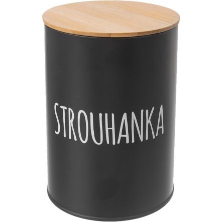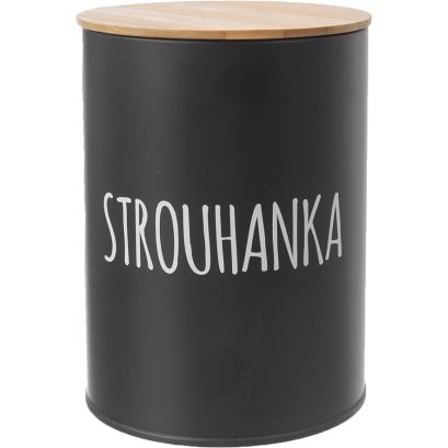 Bílý nápis STROUHANKA okamžitě prozradí, jaký obsah plechovka ukrývá – ten ocení zejména příznivci smažených jídel a klasického trojobalu ve strouhance ze suchých rohlíků nebo mletých cornflakes. Součástí je i víčko z bambusového dřeva, jehož silikonové těsnění zaručuje, že se obsah nevysype, kde nemá.
