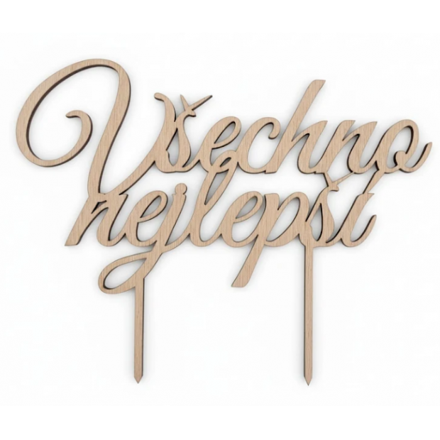 Stylový dřevěný zápich „Všechno nejlepší“ o délce 15 cm dodá každému dortu či dezertu osobní a elegantní dotek.