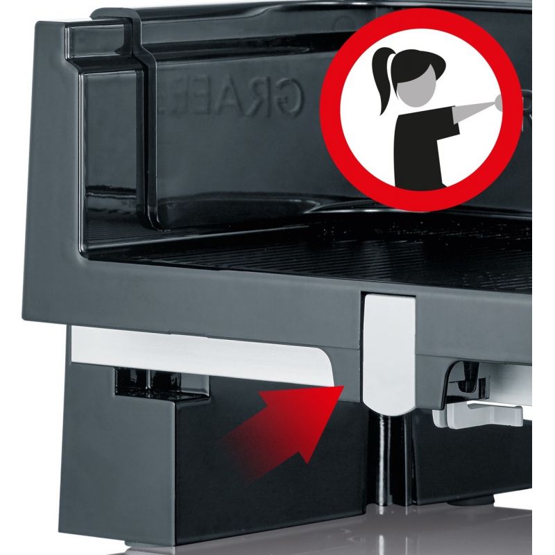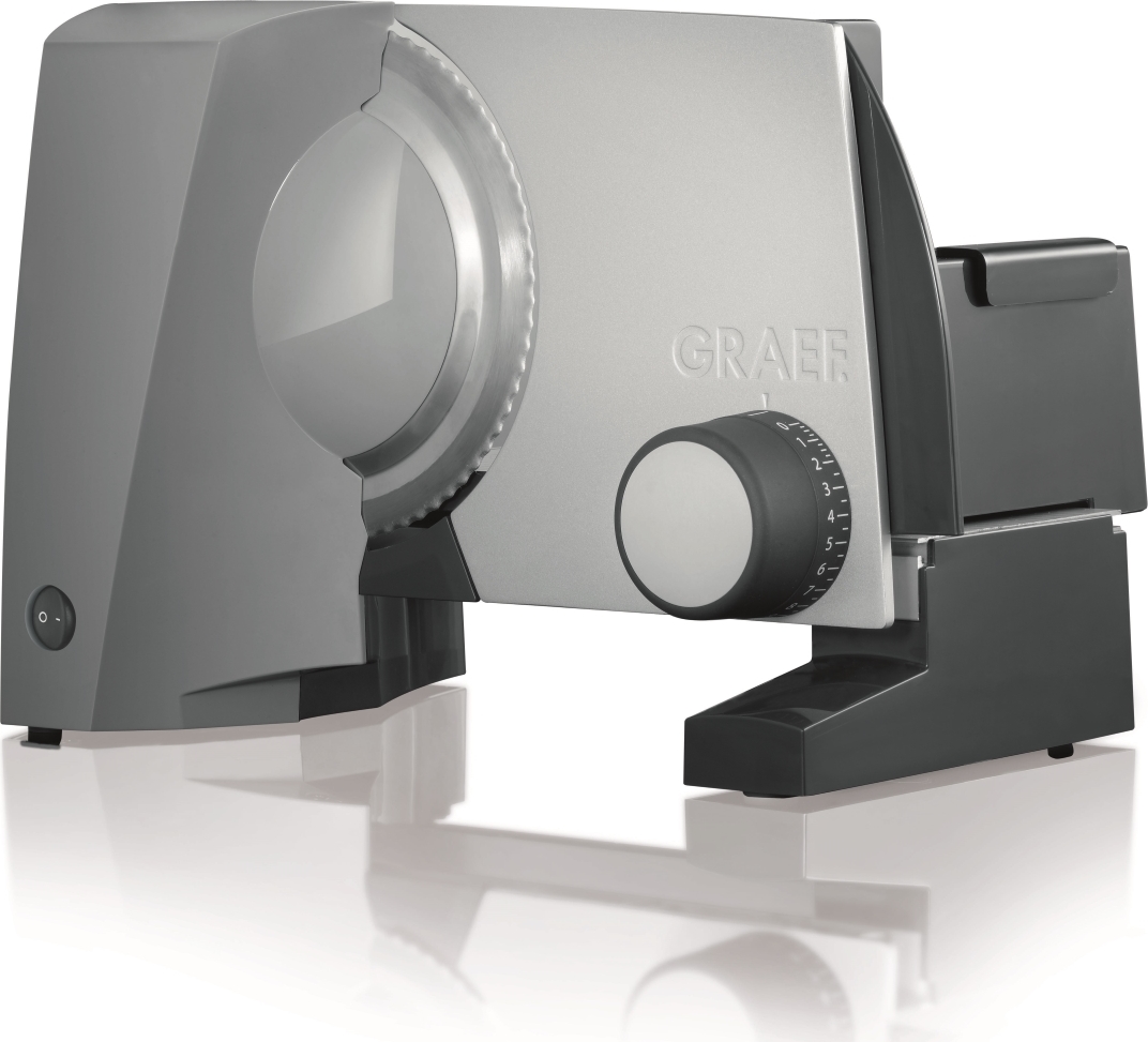 Elektrický kráječ GRAEF G-Line G 50 zoubkovaný ocelový řezný kotouč o průměru 170 mm, zcela nové, revoluční, konstrukce, vyrobený v Německu kompaktní konstrukce, minimální nároky na místo při nejvyšší kapacitě krájení vysoce stabilní provedení s opěrno