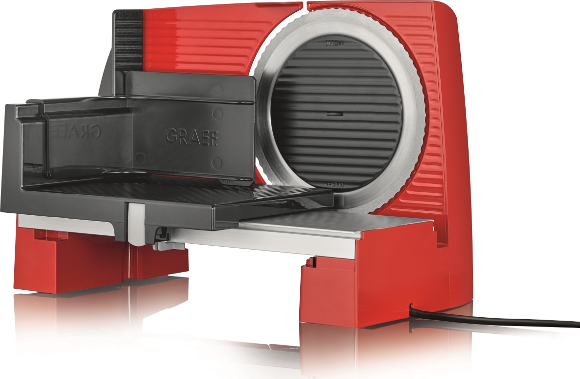 Elektrický kráječ GRAEF SKS 10003 zoubkovaný nerezový řezný kotouč o průměru 170 mm s bezpečnostním odnímatelným krytem zcela nová revoluční konstrukce kompaktní konstrukce, minimální nároky na místo vysoce stabilní provedení s opěrnou nohou plastový k