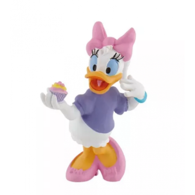Bullyworld Disney figurka Daisy Duck s dortem. Daisy je krásná přítelkyně Kačera Donalda a nejlepší kamarádka Minnie Mouse. Daisy je milá, okouzlující, ráda mluví a je trochu drzá. Je zuřivě odhodlaná a snaží se jakýmkoli způsobem dosáhnout toho, co chce. Figurka je ručně malovaná nejedlá dekorace i hračka pro děti od tří let.