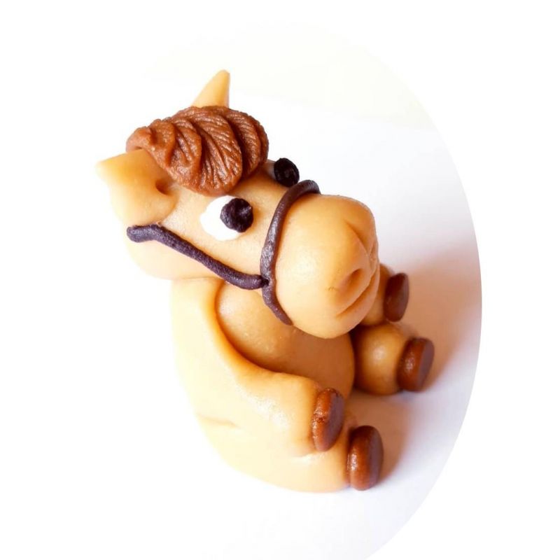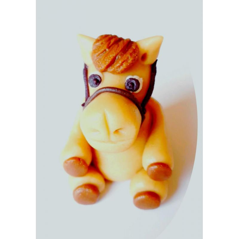 Ručně modelovaná 3D postavička koně. Na výrobu byla použita modelovací kokosová hmota s příchutí a aroma sladkých mandlí. Lze s ní ozdobit dorty, rolády, zákusky a další.