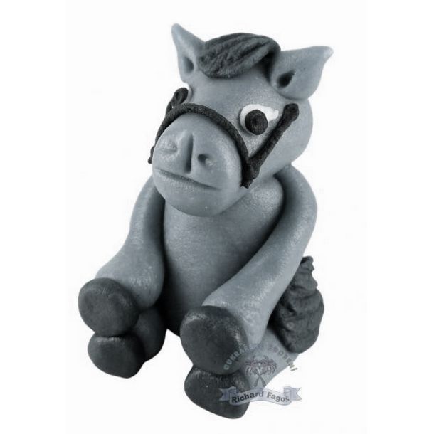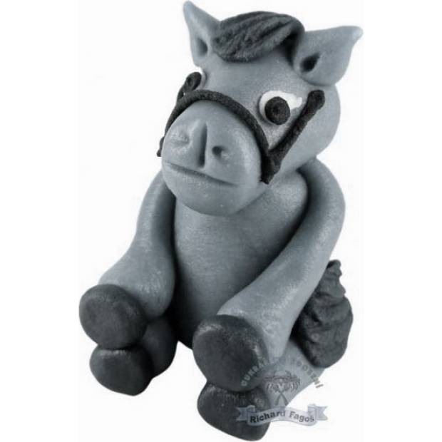 Ručně modelovaná 3D figurka koně. Na výrobu byla použita modelovací kokosová hmota s příchutí a aroma sladkých mandlí. Lze s ní ozdobit dorty, rolády, zákusky a další.
