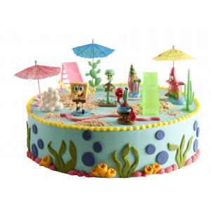 S pomocí figurky na dort vytvoříte atraktivní dárek pro děti i dospělé. Plastová figurka představuje oblíbenou postavičku Sponge Boba a jeho podmořské město. Vyrobena je z omyvatelného a zdravotně nezávadného materiálu. Tuto nejedlou dekoraci lze využívat i opakovaně. Je umístěna na plastovém podstavci. Stačí ji dát na kousek fondánu, marcipán nebo jedlý papír.