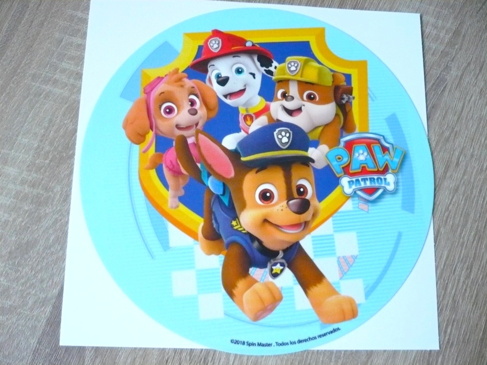 Jedlý papír s potiskem Tlapková patrola. 20 cm.