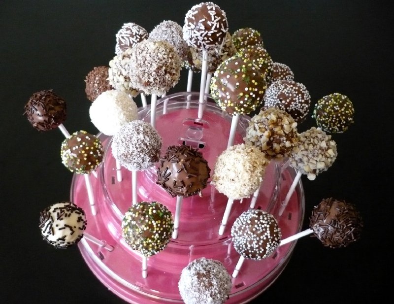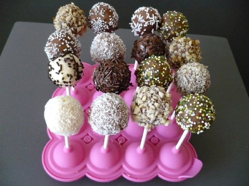 Cake pops – pečená lízátka jsou velmi oblíbená hlavně v Anglii a Americe. Je to malá sladká tečka při různých příležitostech, hlavně oslavách. Dělá se mnoho variant, podle příležitosti použití. Mají různé názvy, jako např. dortové kuličky v čokoládě, dortové kuličky nebo lízátkové dorty. V současné době jsou velmi oblíbené a žádané i u nás. Ke slavnostním příležitostem bývají krásně zdobené a jsou ozdobou stolu při různých oslavách. Nejvíce asi potěší děti. Pokud se někdo chce pustit do pečení sám, potřebuje k tomuto účelu pouze formu a tyčinky na napíchnutí. Ty jsou součástí balení, ale dostanou se koupit i samostatně. Takže každý může mít rovnou zásobu do budoucna. Já doporučuji ještě i stojan, který je k tomuto účelu přímo určený. Může se používat jak na cake pops, tak i na různá lízátka. Forma je vyrobená z pevného 100 % platinového silikonu, dobře drží tvar a přesto je ohebná. Moc dobře se používá i udržuje, lze ji mýt v myčce nádobí. Forma je o rozměrech 16,5 cm x 16,5 cm. Odolává teplotám od – 60°C do + 230°C, je možné ji používat jak v klasické troubě, tak i mikrovlnné troubě. Skládá se ze dvou dílů, do spodního se vloží těsto a přiklopí se horním dílem s dírkami, které slouží k odvodu páry. Před naplněním je dobré oba dva díly lehce vymazat olejem a jemně vysypat polohrubou moukou. Těsto se velice dobře plní cukrářským sáčkem s kovovou hladkou špičkou. Těsto se připraví s práškem do pečiva, nejraději piškotové. Může být s kakaem, ořechové atp. Naplněná forma se přiklopí horním dílem a vloží do trouby předehřáté na cca 170 °C a peče se zhruba 20 minut. Po částečném zchladnutí ve formě se korpusy vyjmou a nechají vychladnout na mřížce. Pak se do nich zatlačí tyčinky, jejíž konce se máčejí do rozpuštěné čokolády. To proto, aby dobře držely a neprotáčely se. Po zatuhnutí korpusy dozdobíme dle své fantazie. Nejčastěji to asi budou různé druhy čokoládové polevy s nějakým cukrářským posypem. Lze použít i kokos, strouhané mandle, ořechy atp. Hotové cake pops se nechají dobře zatuhnout, odkládat je lze přímo do otvorů složené formy. Já jsem s ní spokojená a proto ji můžu doporučit. M. F.