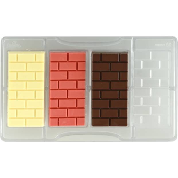 Kompletní řada grafických čokoládových modelů zahrnuje čokoládovou formu na pralinky s motivem cihel. Profesionální tvary formy na čokoládu vyrobené z polykarbonátu, materiál, díky kterému jsou čokolády transparentní a dokonalé. Vytvoříte čtyři kusy čokolády najednou.