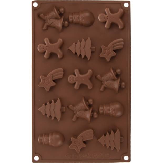 Stačí rozpuštěnou čokoládu nalít, přidat vaše oblíbené ingredience, ořechy, sušenou levanduli apod. a nechat ztuhnout v ledničce. Jednotlivé tvary z pružné hnědé formy jednoduše vyloupnete. Nebo ji použijte na pečení drobných máslových sušenek ke odpolední kávě.