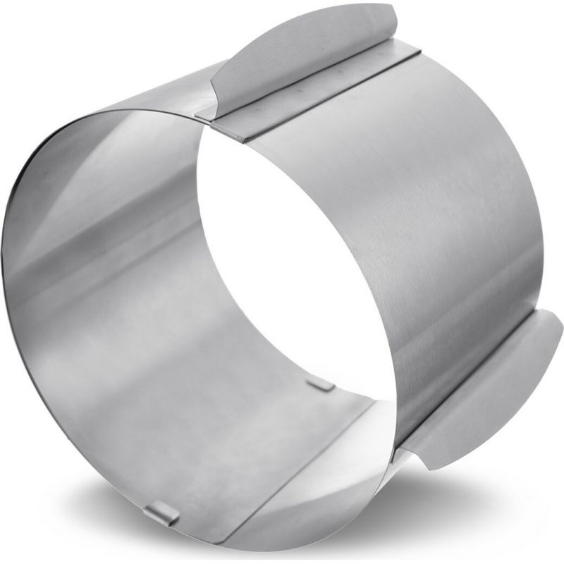 Posuvná forma na pečení dortů různých velikostí. Kruhový tvar. Stačí Vám pouze jediná forma a můžete péct několikapatrové dorty. Posunovací aretovací pásek udrží formu v požadovaném nastavení. Materiál: nerezová ocel 430. Rozměry: pr. 16-30 cm, v. 14,5 cm. Nelze mýt v myčce.
