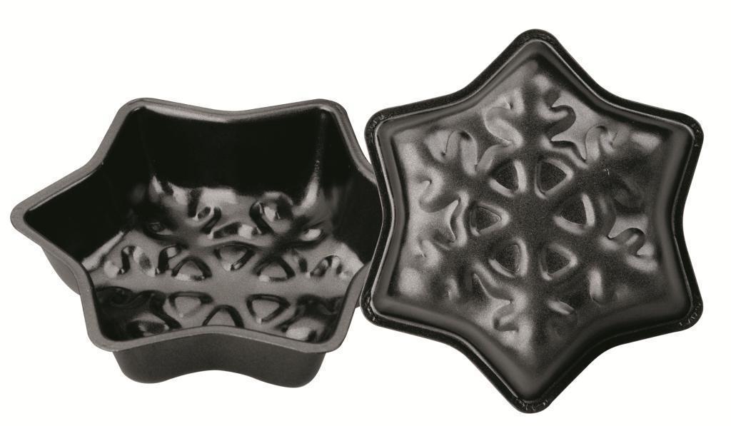 Ocelový produkt, jehož výška je 2,5cm. Povrch materiálu je opatřen speciální teflonovou vrstvou, která zaručuje maximální nepřilnavost. Dorty, cukroví, moučníky a koláčky se tak připravují mnohem snadněji, než kdy předtím. Vánoční forma na pečení, kterou lze bez problému umístit do myčky na nádobí.