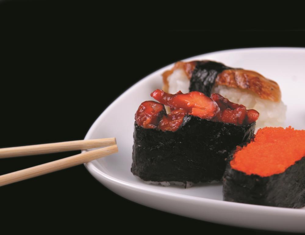Forma na jednoduchou přípravu japonského sushi „Dunkan“. Do formy vložíte připravené řasy nori, přidáte rýži a podle chuti rybí jikry, lososový kaviár a další ingredience. Formu uzavřete a sushi bude mít požadovaný správný tvar… Forma na sushi je vyrobená z kvalitního potravinářského plastu, který se může umývat v myčce nádobí. Rozměry formy jsou 19 x 7 centimetru a připravíte v ní 6 kusů sushi.