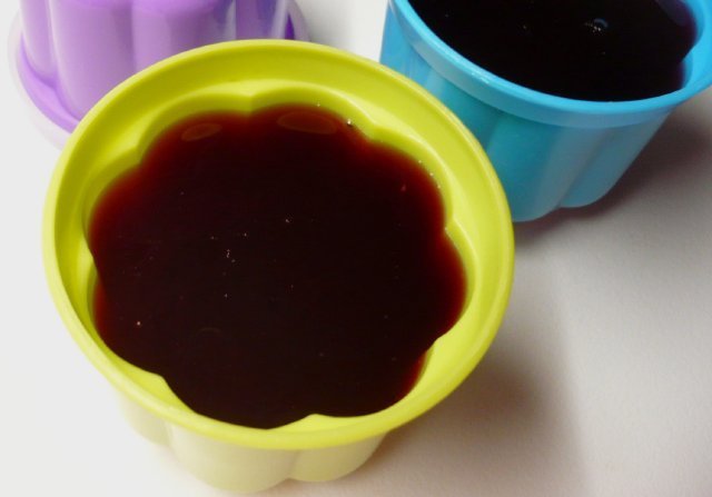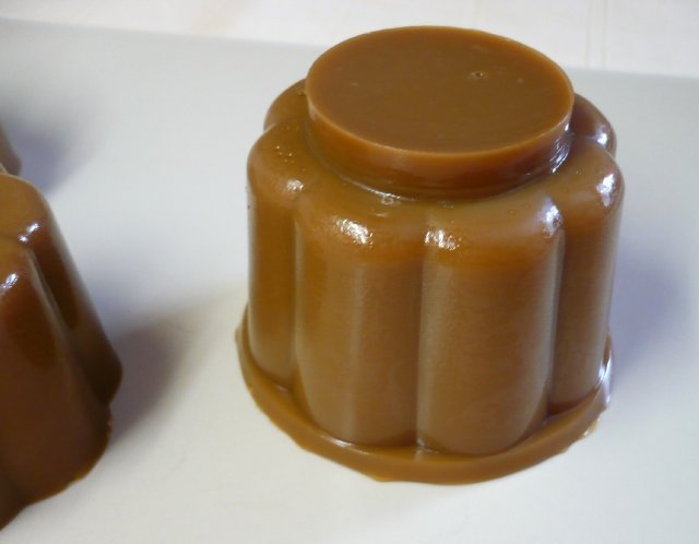 V těchto plastových bábovičkách se dělají různé dezerty a slané aspiky ztužené želatinou opravdu skvěle. Bábovičky mají objem 120 ml a výhodou je, že se dají z obou stran odklopit. Takže se dají plnit jak z jedné, tak i druhé strany a ve výsledku je trošku jiný tvar výrobku. Nádobky před naplněním nepatrně přetřu olejem, přebytečný odstraním ubrouskem. Stačí jen slabý a nepatrný povlak, výrobky se pak lépe vyklápějí.
