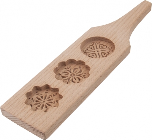 Může být nejen funkčním pomocníkem, ale také hezkou dekorací nejen v rustikální domácnosti nebo na chalupě. Typ formy navazuje na tradiční, staročeské, ručně vyřezávané formy na perníky.