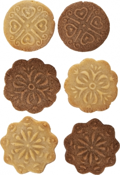 Velice zajímavá forma na výrobu vytlačovaného cukroví či perníčků ve tvaru koleček a květin.