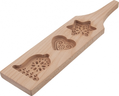 Může být nejen funkčním pomocníkem, ale také hezkou dekorací nejen v rustikální domácnosti nebo na chalupě. Typ formy navazuje na tradiční, staročeské, ručně vyřezávané formy na perníky.