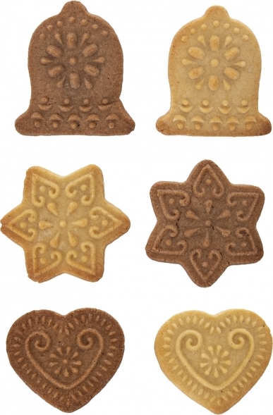 Velice zajímavá forma na výrobu vytlačovaného cukroví či perníčků ve tvaru hvězdy, srdce a zvonku.
