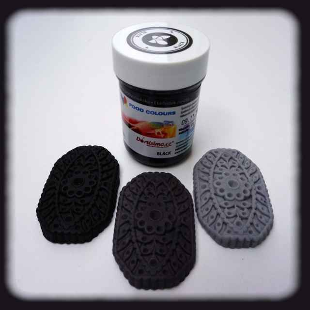 Černá gelová barva v tubě pro snadné dávkování. Vhodná na barvení fondánu, marcipánu i krému.
