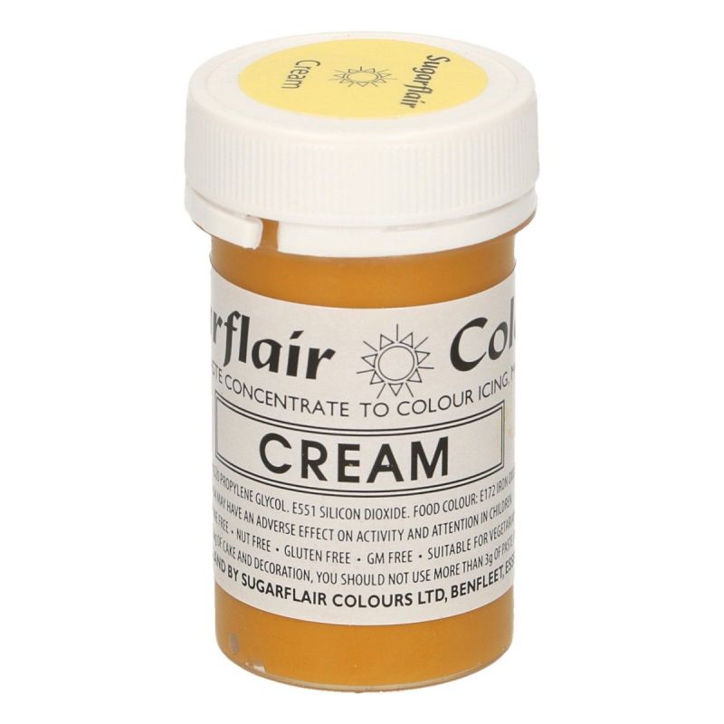 Tato barva z řady Paste Colors od Sugarflair je vhodná pro máslové krémy, královskou polevu, cukrovou pastu, marcipán, květinovou a modelovací pastu. Při šetrném použití můžete dosáhnout nejjemnějších pastelových barev, zatímco přidáním dalších získáte zářivé barvy, aniž byste změnili konzistenci produktu, se kterým pracujete.