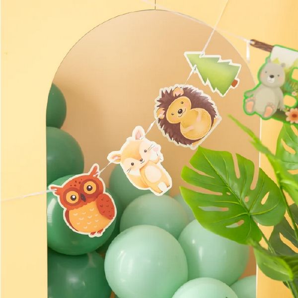 Krásná papírová girlanda, která dokonale ozdobí pokoj na narozeniny vašeho dítěte. Girlanda je vyrobena z kvalitního barevného papíru. Hlavní ozdobou jsou lesní zvířátka s dokonalou grafikou. Girlanda je nejen působivou ozdobou pokoje, ale také ideálním prvkem stěny pro fotografování. Barevná písmena a krásné grafické motivy dokonale ladí s dekorem oslavy narozenin. Má jedinečný design, její montáž je snadná. Girlanda je také vhodný dekorativní prvek pokoje po celý rok.