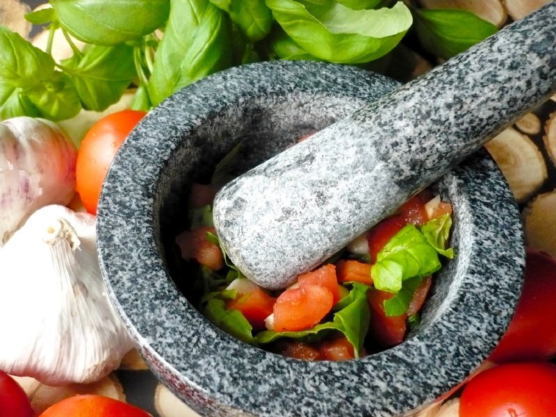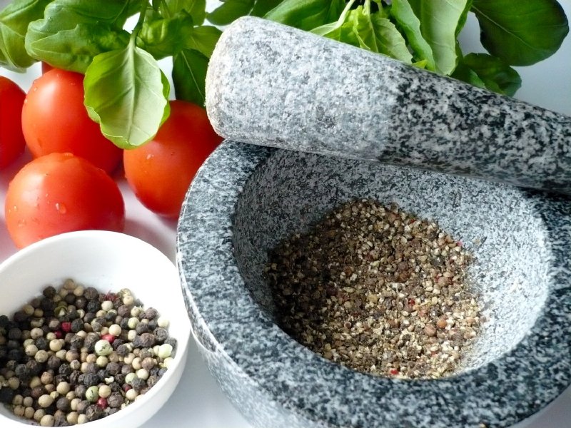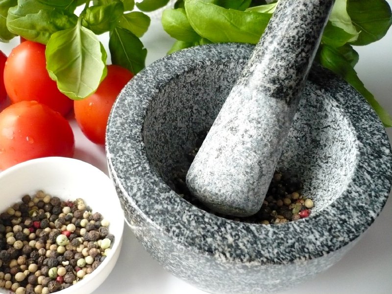 Mramorový masivní hmoždíř na drcení koření, které bude mít kromě výrazné vůně i intenzivnější chuť, a