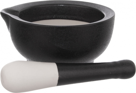 Vnitřní část hmoždíře a spodní strana zakulaceného tloučku není glazovaná, dojde tak k efektivnějšímu drcení.