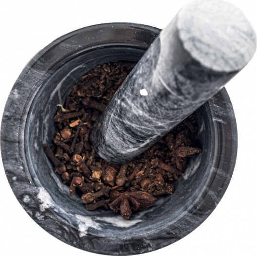 Masivní porcelánový hmoždíř na drcení koření, které bude mít kromě výrazné vůně i intenzivnější chuť,
