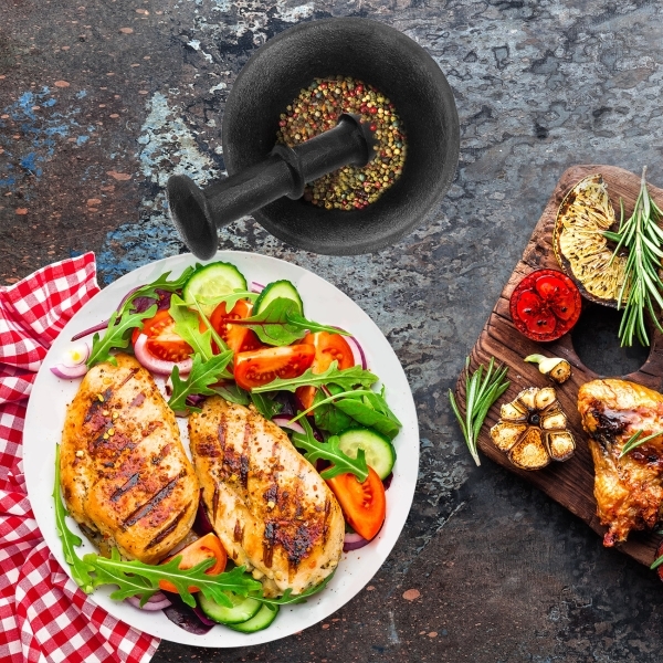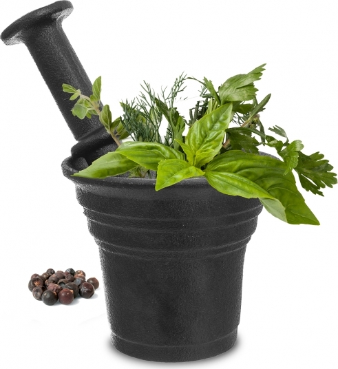 Při přípravě, nakládání masa na pečení a grilování je potřeba nadrtit koření. A aby bylo drcení efektivní, poslouží k tomu pevný litinový hmoždíř s troukem, u kterého se nemusíte bát pořádně zabrat.