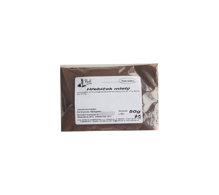 Koření hřebíček mletý slouží na ochucení moučníků i kompotů. Balení 50 g.