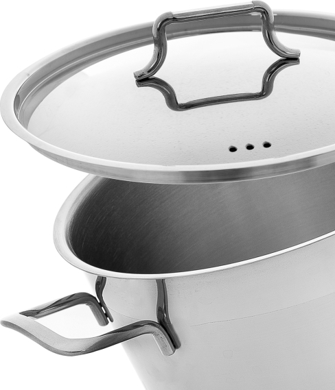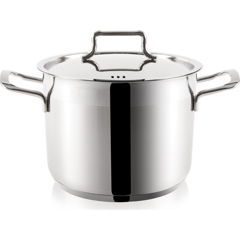 Hrnec s nerezovou poklicí s otvory pro únik páry - objem 18,2 l, pr. 30 cm, v. 28 cm. Nerezové hrnce představují díky používaným technologiím a kvalitním materiálům výrobek vhodný pro každou moderní domácnost a jsou ideální cestou ke zdravé výživě, dietní, ekonomické a estetické přípravě pokrmů. Nabízené nádoby jsou vyrobeny z vysoce kvalitní nerezové oceli třídy 304. Naakumulovaná energie předává teplo dále do nádoby – tepelný zdroj vypínáme v předstihu. Nádobí lze používat na všechny typy spotřebičů i do trouby. Vhodné i do myčky nádobí. – fritování, napařování, vaření s minimálním množstvím tuku, bez ztráty vitamínů a minerálů obsažených v potravinách - nádobí představuje dokonale hygienické prostředí pro vaření a uchování potravin - zachování přirozené chuti a hmotnosti upravovaných potravin - vnější a vnitřní povrch nádob je vysoce leštěný, takže brání usazování nečistot a zaručuje dokonalou údržbu - sendvičové dno s termoakumulačními vlastnostmi zaručuje rychlé a ekonomické vaření s výraznou úsporou energie - široká nabídka kastrolů, hrnců a rendlíku Vám umožňuje vytvořit si soupravu nádobí podle vlastních představ.