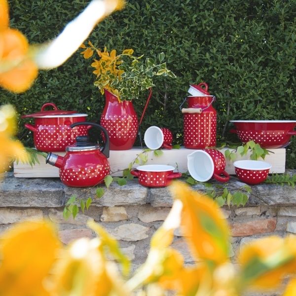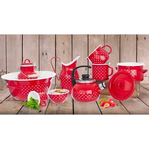 Káva, kakao nebo čaj. Ať už patříte do jakéhokoliv týmu, teplý nápoj v tomto červeném smaltovaném hrnku o objemu 0,8 l rozzáří každé ráno. Doma i na chalupě.
