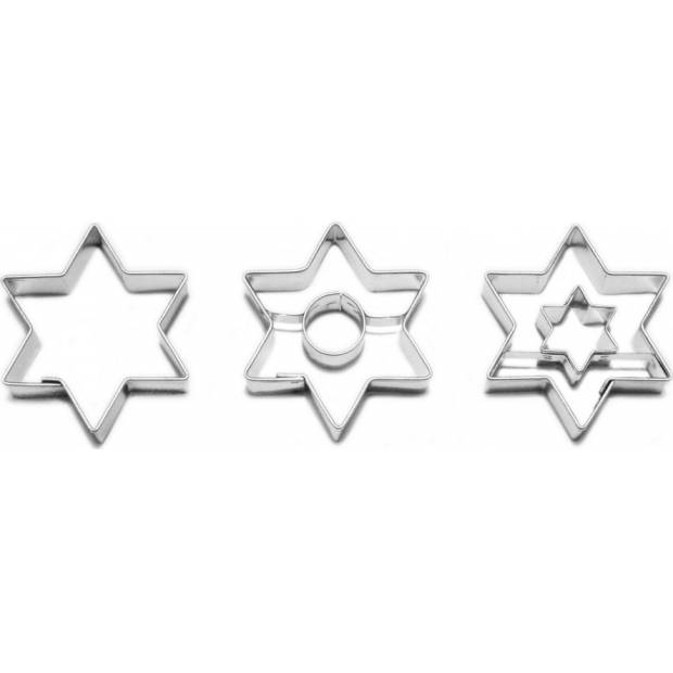 Sada tří kusů vykrajovátek ve tvaru hvězdy s různými středy.