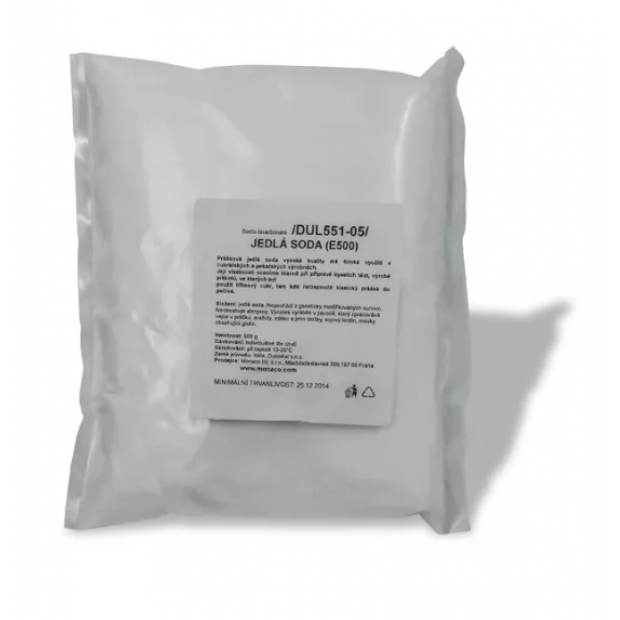 Prášková jedlá soda se využívá v cukrářských a pekařských výrobnách. Díky svým vlastnostem se používá především při přípravě kyselých druhů těst, dětských piškotů, ve kterých je třtinový cukr a všude tam, kde není možné použít klasický kypřící prášek do pečiva. Soda má mimo jiné blahodárné účinky na zažívání. Balení obsahuje 500g/ sáček. Dávkování je zcela individuální, dle potřeby.