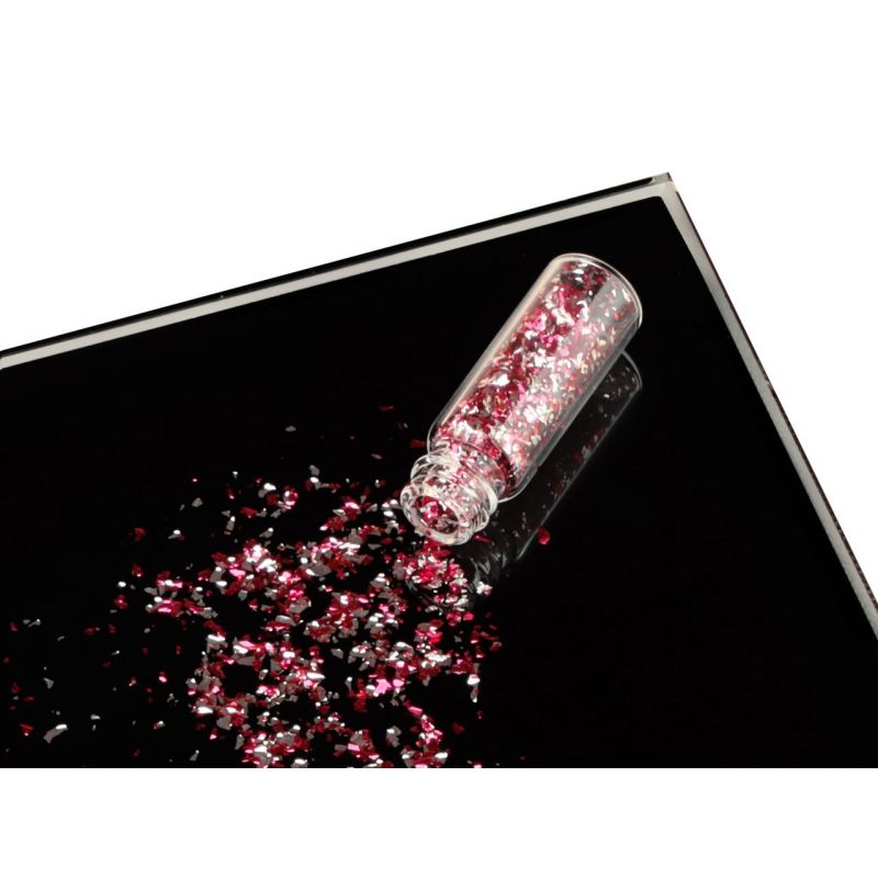 Modifikovaný kukuřičný škrob, přírodní potravinářská barviva: Monascus, Gardenia Yellow, Gardenia Blue, červené zelí; zvlhčovadlo: glycerin; emulgátor: ester sacharózových mastných kyselin; barvivo: stříbro.