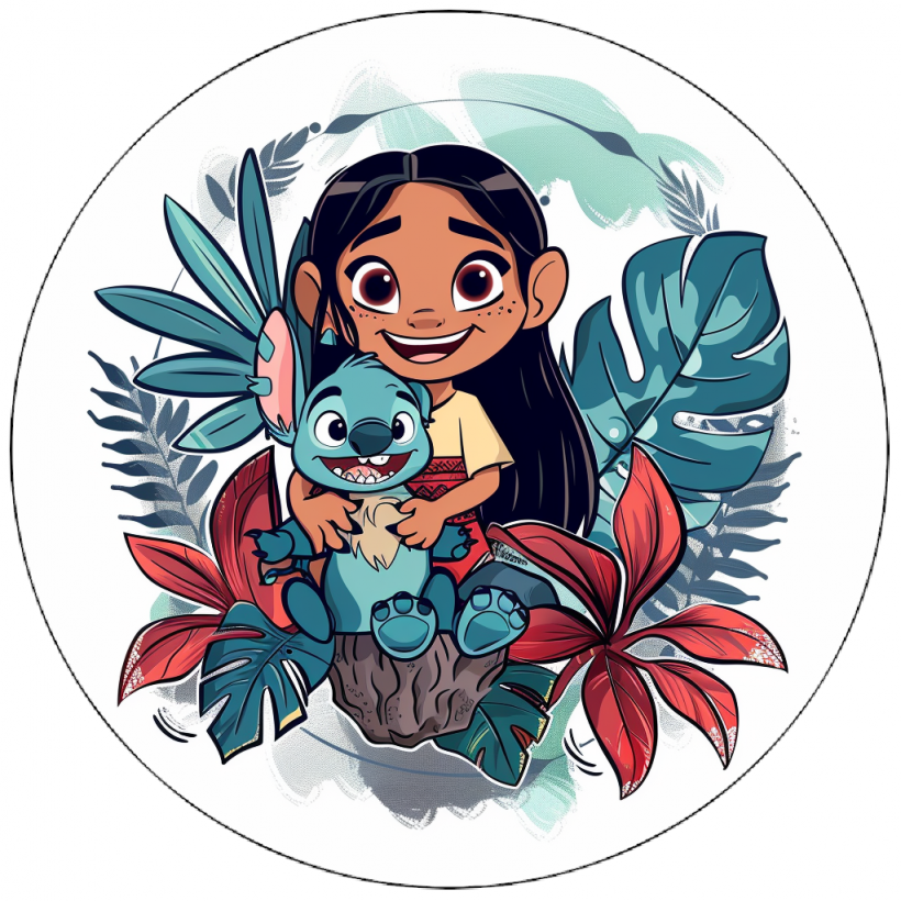 Jedlý papír Lilo a Stitch s květinami 19,5 cm