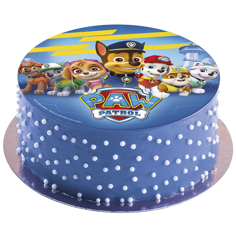 Jedlý papír k jednoduchému a rychlému dekorování dortů. Jedná se o bezlepkový výrobek. Na jeho výrobu jsou použity kvalitní suroviny a potravinářské barvy. Tisk je prováděn ve speciální potravinářské tiskárně. Jedlý dort umožní ozdobení dortu či jiných dezertů. Pokládá se na hotový dort, jehož vrchní díl můžete potřít tenkou vrstvou máslového krému či fixačního jedlého gelu. Papír položte na tuto vrstvu, uhlaďte a potřete opět gelem. Bude lépe držet a rozjasní se jeho barvy. Přikládejte jej na dort minimálně tři hodiny před konzumací, aby byl při servírování dortu měkký. Tento jedlý papír je potištěn motivem tlapkové patroly. Průměr 20 cm.