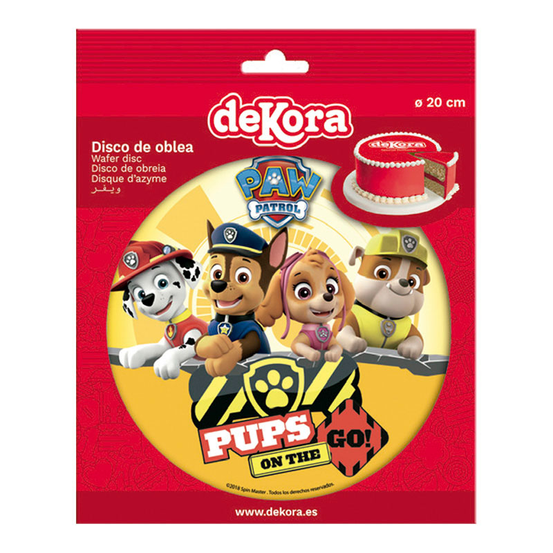 Jedlý papír k jednoduchému a rychlému dekorování dortů. Jedná se o bezlepkový výrobek. Na jeho výrobu jsou použity kvalitní suroviny a potravinářské barvy. Tisk je prováděn ve speciální potravinářské tiskárně. Jedlý dort umožní ozdobení dortu či jiných dezertů. Pokládá se na hotový dort, jehož vrchní díl můžete potřít tenkou vrstvou máslového krému či fixačního jedlého gelu. Papír položte na tuto vrstvu, uhlaďte a potřete opět gelem. Bude lépe držet a rozjasní se jeho barvy. Přikládejte jej na dort minimálně tři hodiny před konzumací, aby byl při servírování dortu měkký. Tento jedlý papír je potištěn motivem tlapkové patroly. Průměr 20 cm.