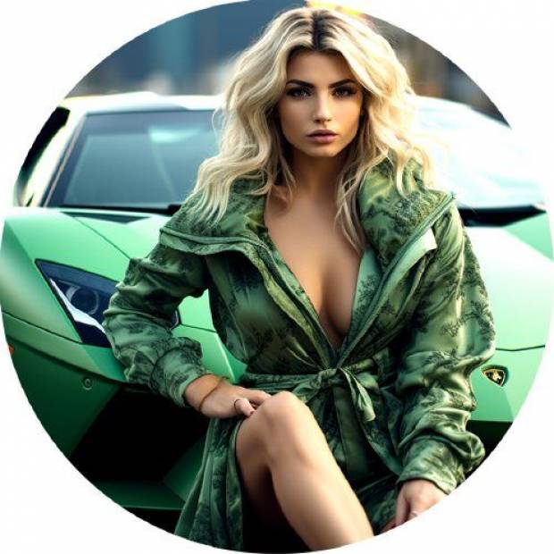Jedlý papír žena před super autem 19,5cm - PICTURE