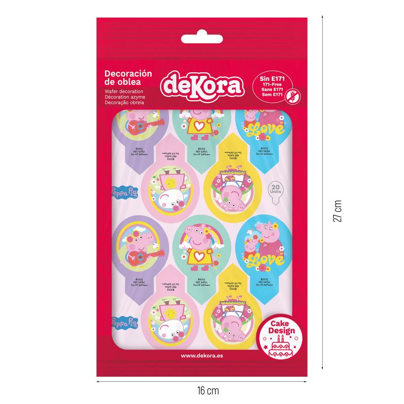 Jedlé dekorace s výrazným potiskem Prasátko Pepa. V balení 6 motivů.