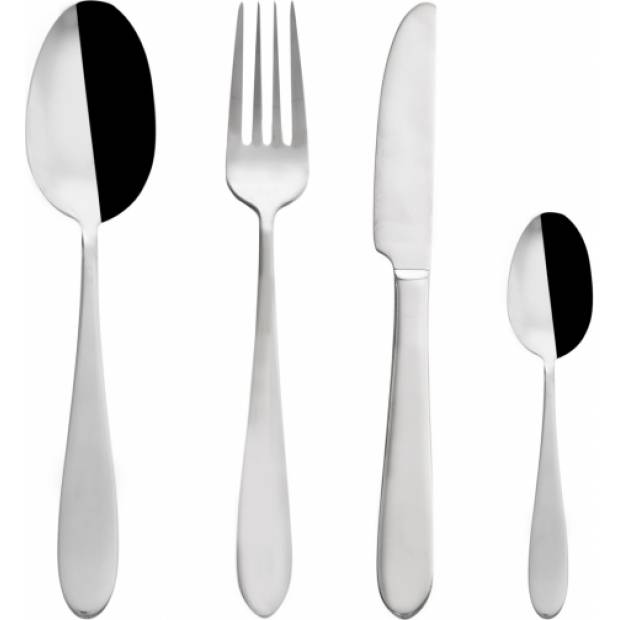Sada příborů pro všední i sváteční stolování. Hladké. Dárkové balení. Sada obsahuje: 6x lžíce (d. 20,5 cm), 6x vidlička (d. 21 cm), 6x nůž (d. 24 cm) a 6x čajová lžička (d. 12,5 cm). Materiál: kvalitní nerez. Sada 24 ks. Příbory lze mýt v myčce na nádobí, ale pokud chcete zachovat jejich lesklý a neporušený povrch, pak to vzhledem k působení čistících prostředků nedoporučujeme.