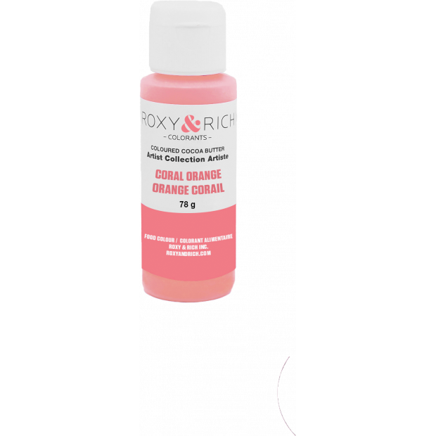 Krásná barva kakaového másla od Roxy & Rich, která mj. lze použít na čokolády, dorty a zákusky. Barva má matný povrch, v sérii více barev. Bezlepkový a bez laktózový produkt. Vhodné pro vegetariány a vegany. Barva se rozpustí přímo v nádobě v mikrovlnné troubě nebo ve vodní lázni a poté je tekutá - velmi snadné použití. Přebytečná barva v lahvičce ztuhne a lze ji použít znovu jindy. Zahřívejte vždy jen 10 sekund, protřepejte a znovu 10 sekund zahřívejte – pozor, ať se nepřipálí. Barva kakaového másla by se neměla temperovat. Lze nanášet štětcem, airbrushem nebo prsty. Opravdu produkt, který podporuje kreativitu. V R&R využívají nejnovější technologické poznatky v potravinářském barvení k vytvoření jedinečných a mnohem zářivějších barev. Stručně řečeno, každá částice je obarvena a poté rozdrcena na atomy. Tímto způsobem je v každém gramu mnohem více barvy. Vše samozřejmě schváleno pro potravinářské použití!