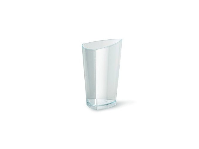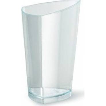 Hranatý pohár má zkosené strany a díky výrobnímu materiálu (PS), který připomíná plexisklo a má zelenkavý nádech se v něm zajímavě odráží světlo a vytváří se duhové odlesky. Pohár vydrží teploty max. 40°C. Neservírujte v něm horké pokrmy. Rozměry: 7,2 x 7,